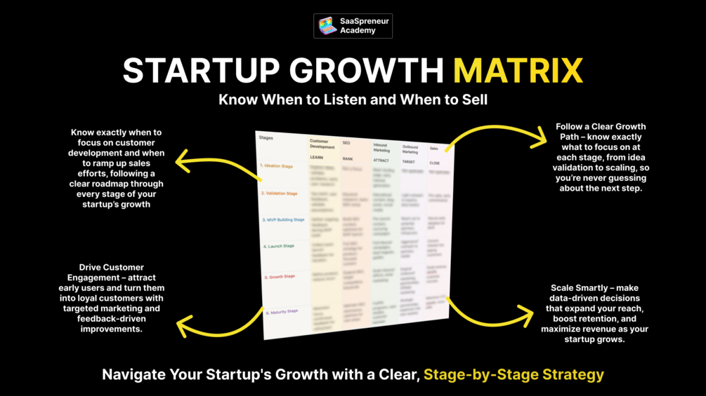 What if you could confidently know exactly what to focus on at each phase of your startup's journey? The Startup Growth Matrix guides you from idea to maturity, helping you zero in on the steps that truly move the needle.